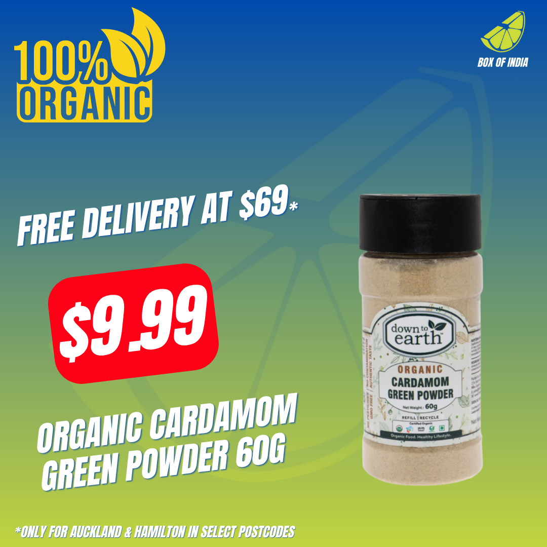 Experience the rich, aromatic flavor of Down To Earth Organic Cardamom Green Powder, a premium spice that elevates your culinary creations. Sourced from the finest organic cardamom pods, this 60g pack is perfect for adding a unique taste to both sweet and savory dishes.