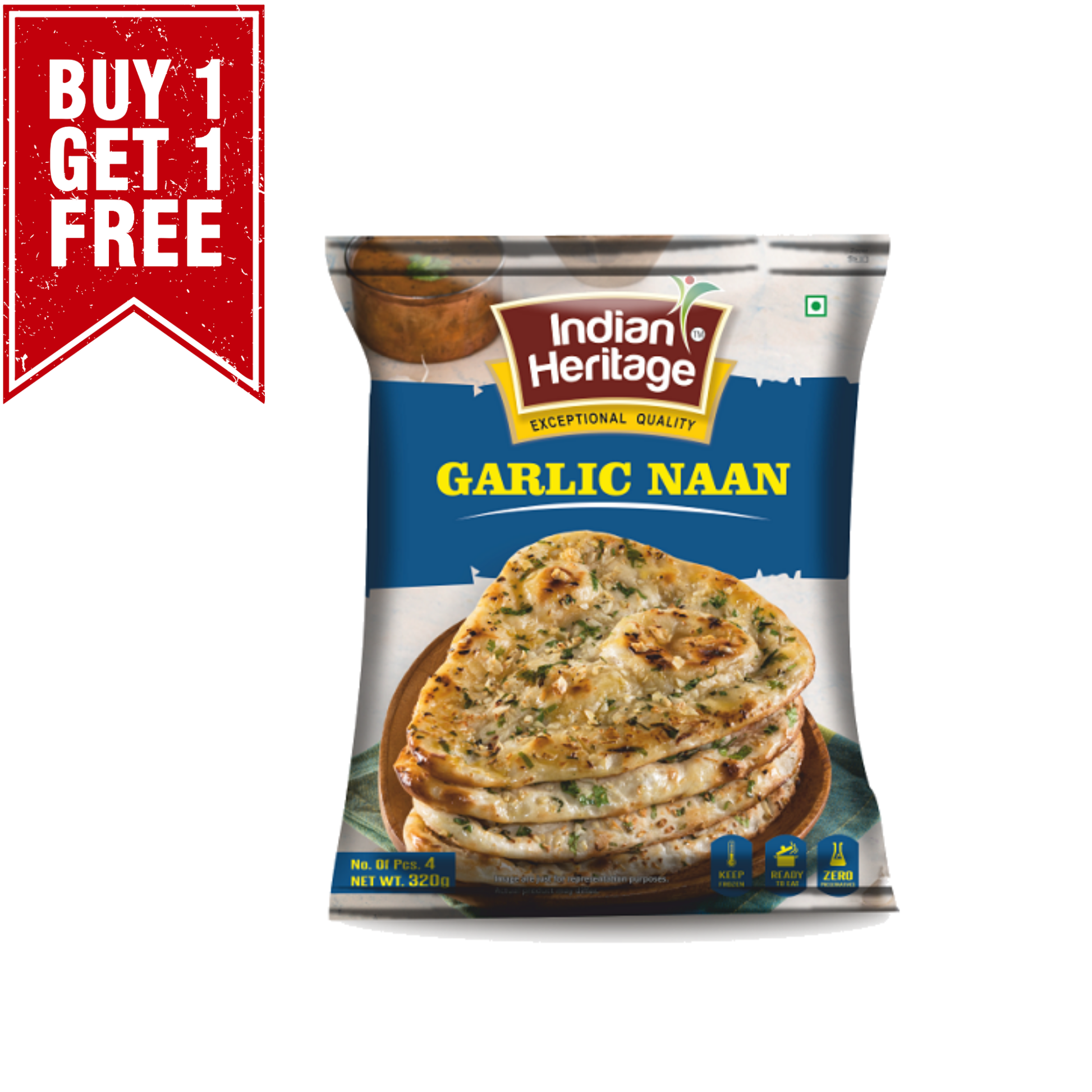 Frozen Garlic Naan 320g (Pack of 4) (Indian Heritage)