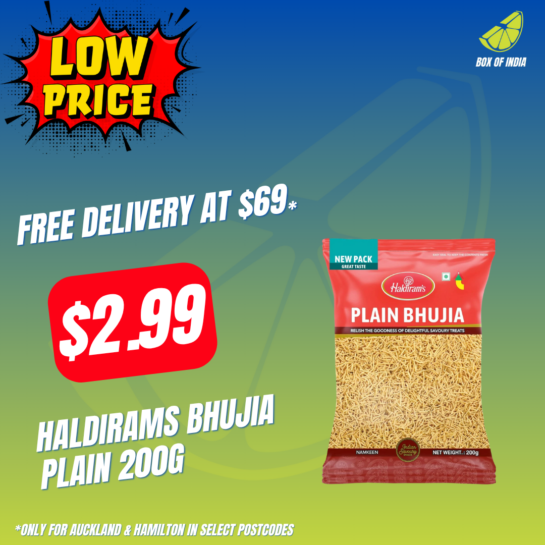 Elevate your snacking experience with Haldirams Bhujia Plain and enjoy the authentic taste of India in every bite.