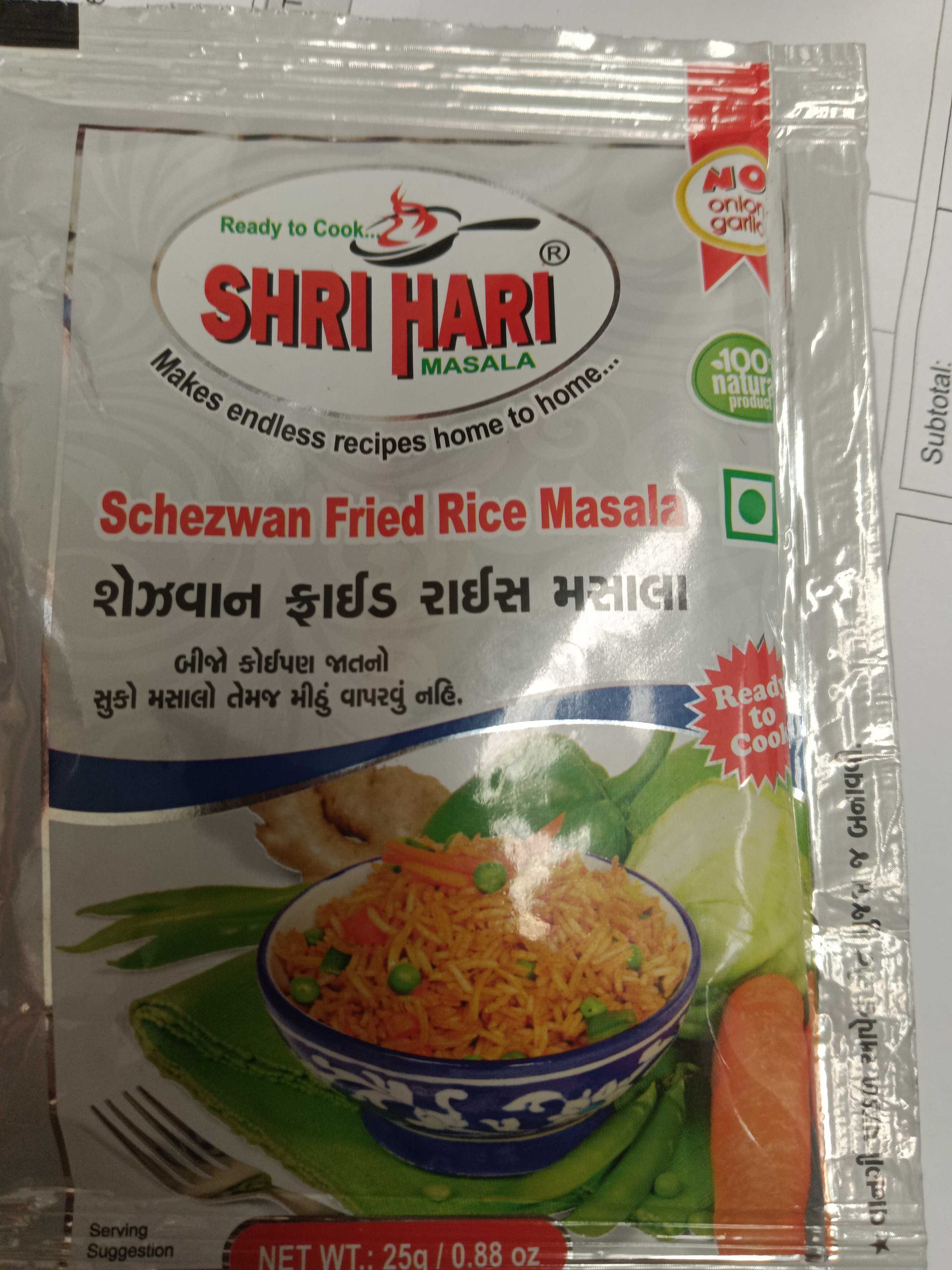 Elevate your culinary creations with Shri Hari Masala's Schezwan Fried Rice Masala. This 25g pack is perfect for those who seek to infuse authentic Schezwan flavor into their fried rice dishes, bringing an explosion of taste to your meals.